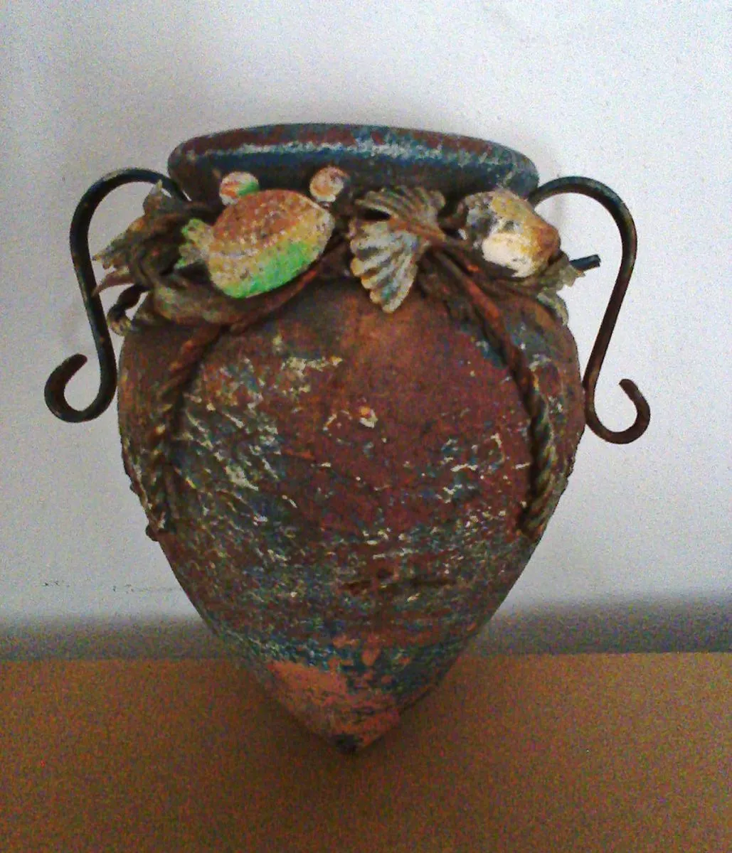 Πολύ όμορφο χειροποίητο σιδερένιο Vintage κιούπι για φυτά / λουλούδια ή οτιδήποτε άλλο. Κάνει εξαιρετική διακόσμηση. Βαριά κατασκευή (1700 gr). Υψος: 22 cm. Πλάτος: 20 cm. Το άνοιγμα στην κορυφή είναι 9 cm εσωτερικό, 12.5 cm εξωτερικό