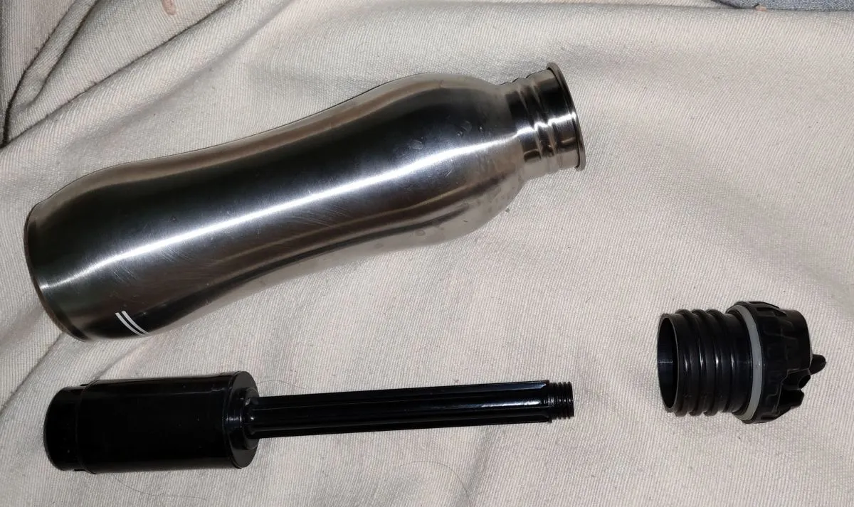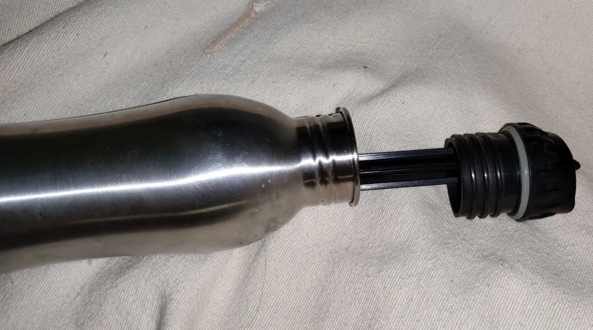 με βιδωτό, φίλτρο άνθρακα (χρειάζεται αντικατάσταση). Το φίλτρο μπορεί να αφαιρεθεί, όποτε είναι επιθυμητό, ώστε να αποθηκεύεται αλλού είδους υγρό (καφές/χυμός/τσάι).
