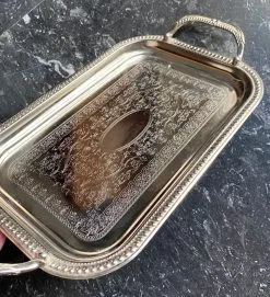 Ασημένιος δίσκος αντίκα με εγχάρακτο μοτίβο